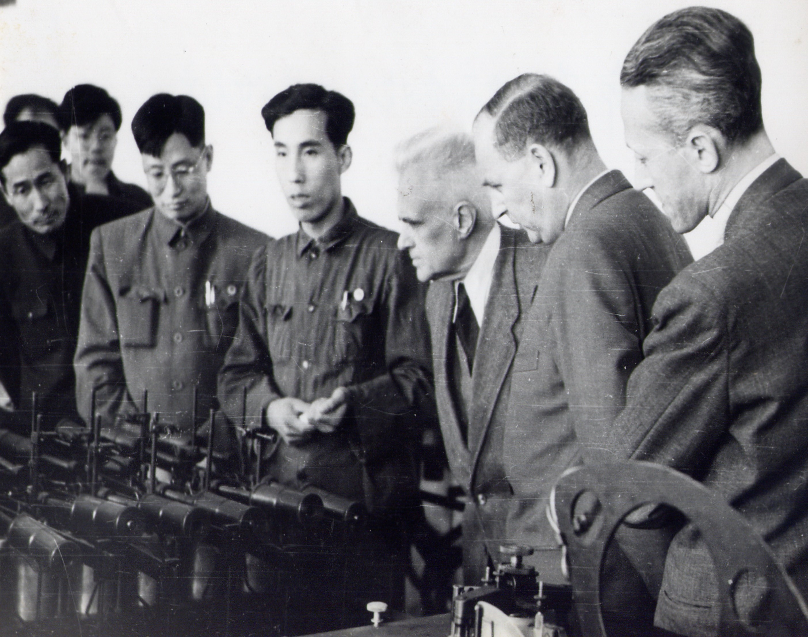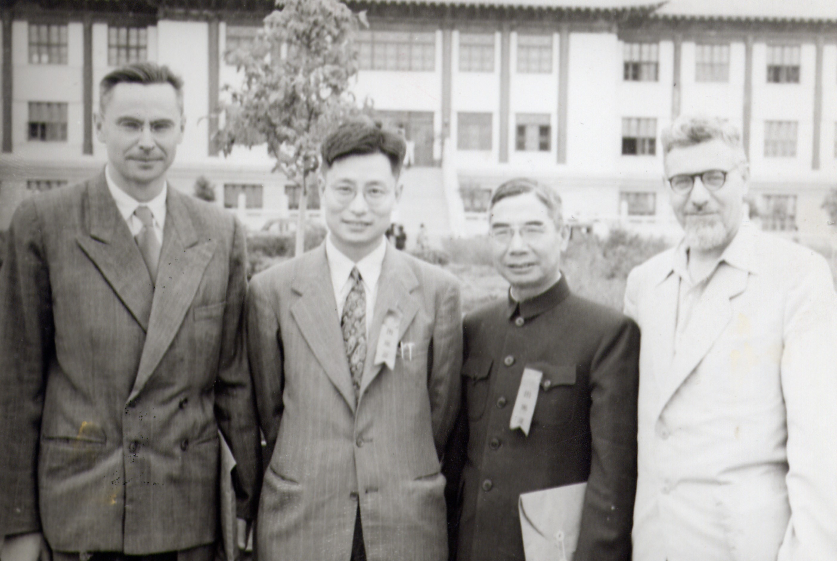 陪同来访的苏联专家参观土动力实验室(前排左2,1955年) |