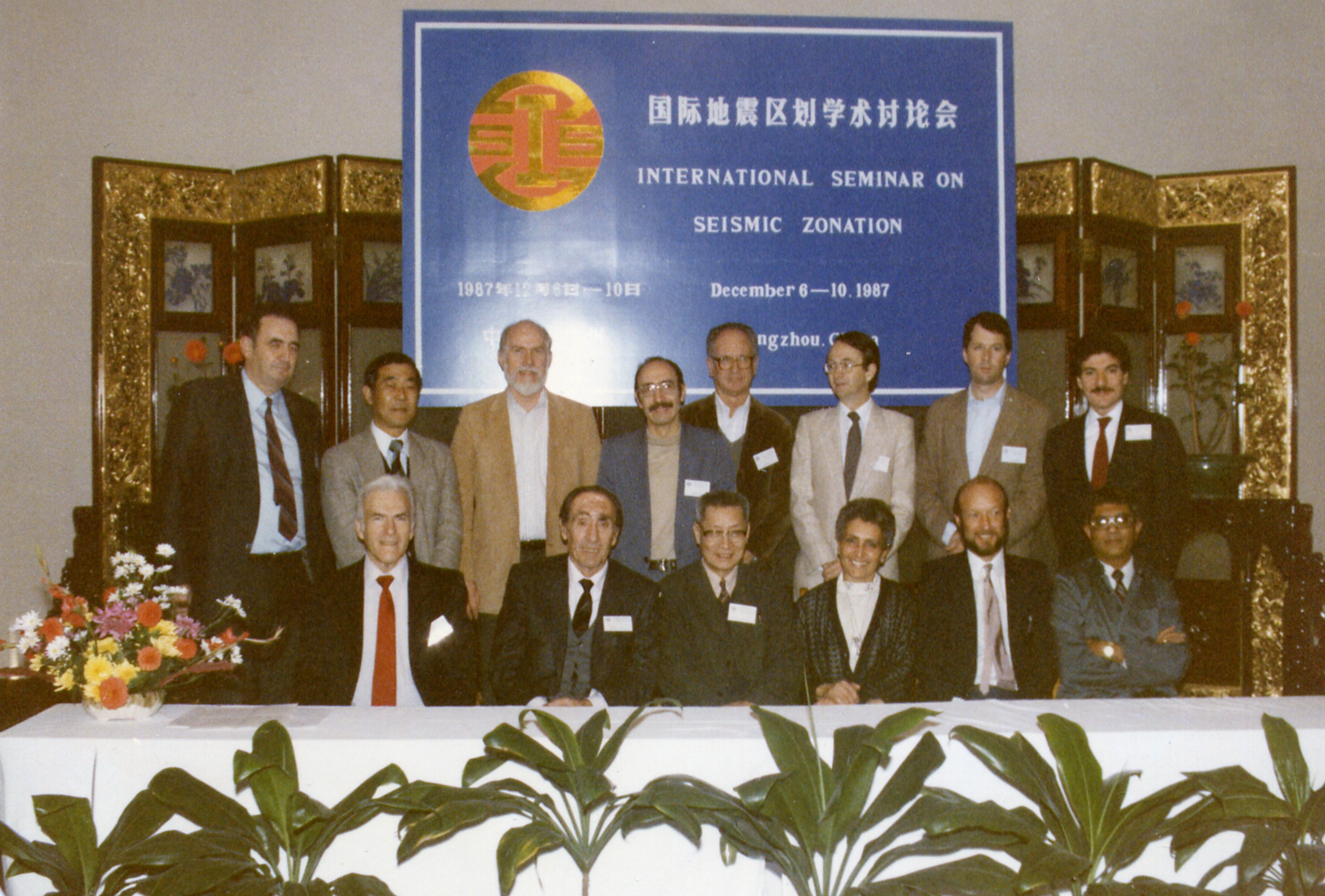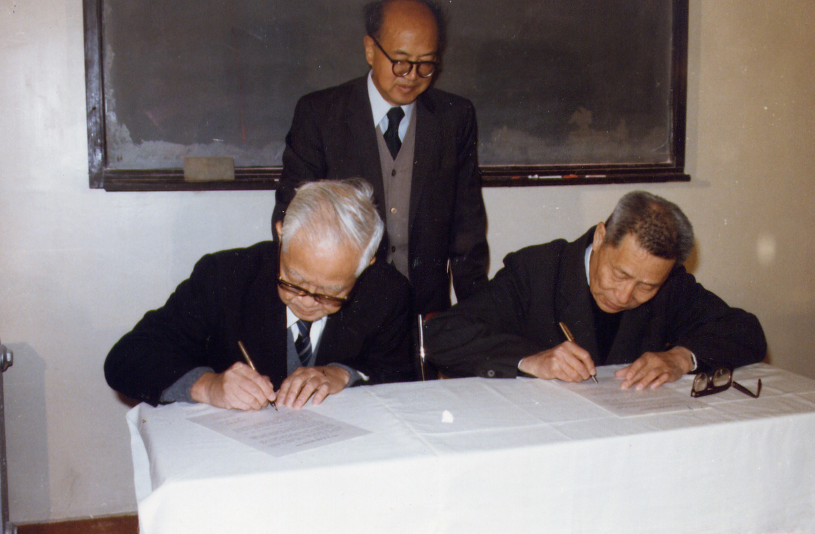 在中日地震工程学学术讨论会上签字(右1,1985年) |