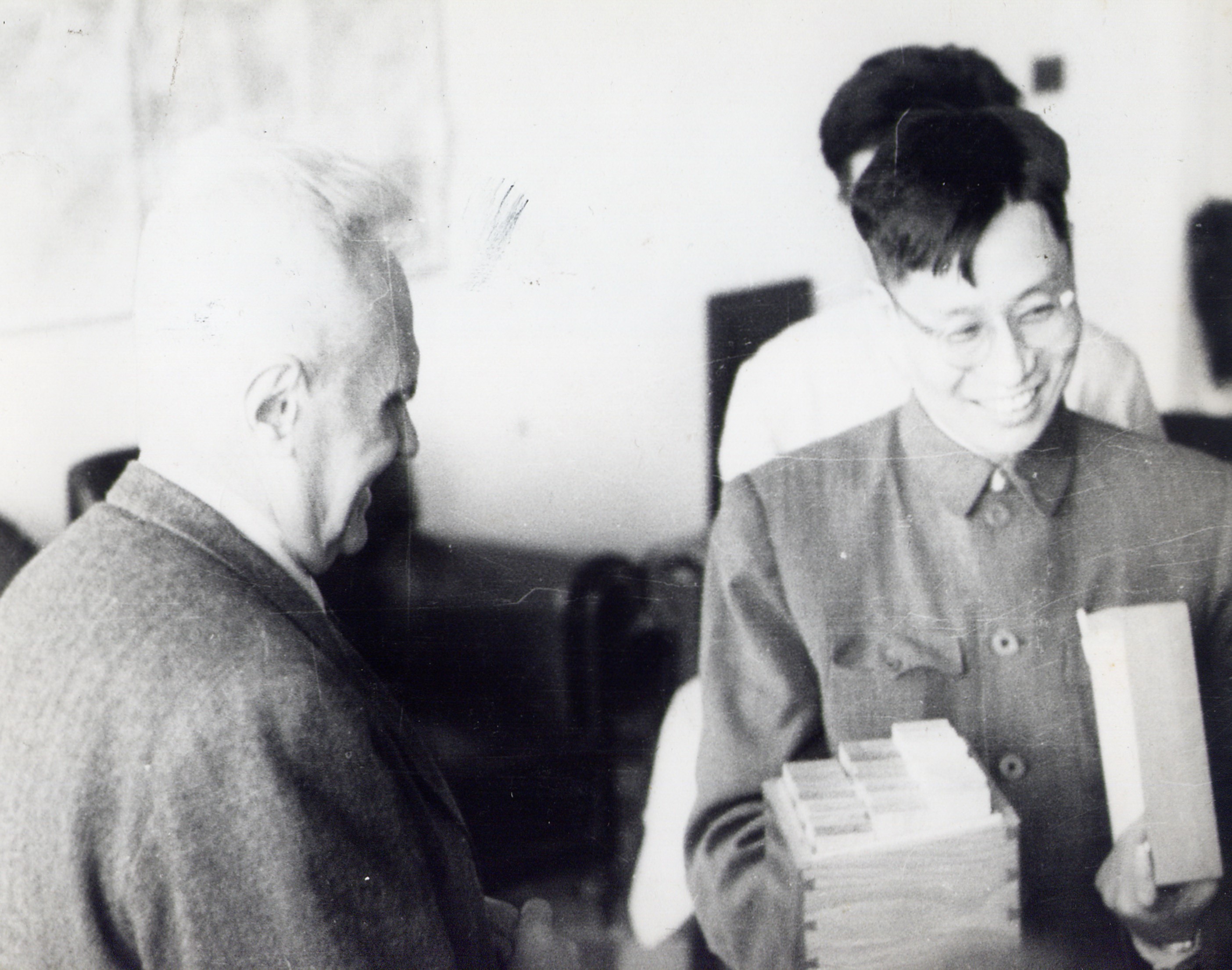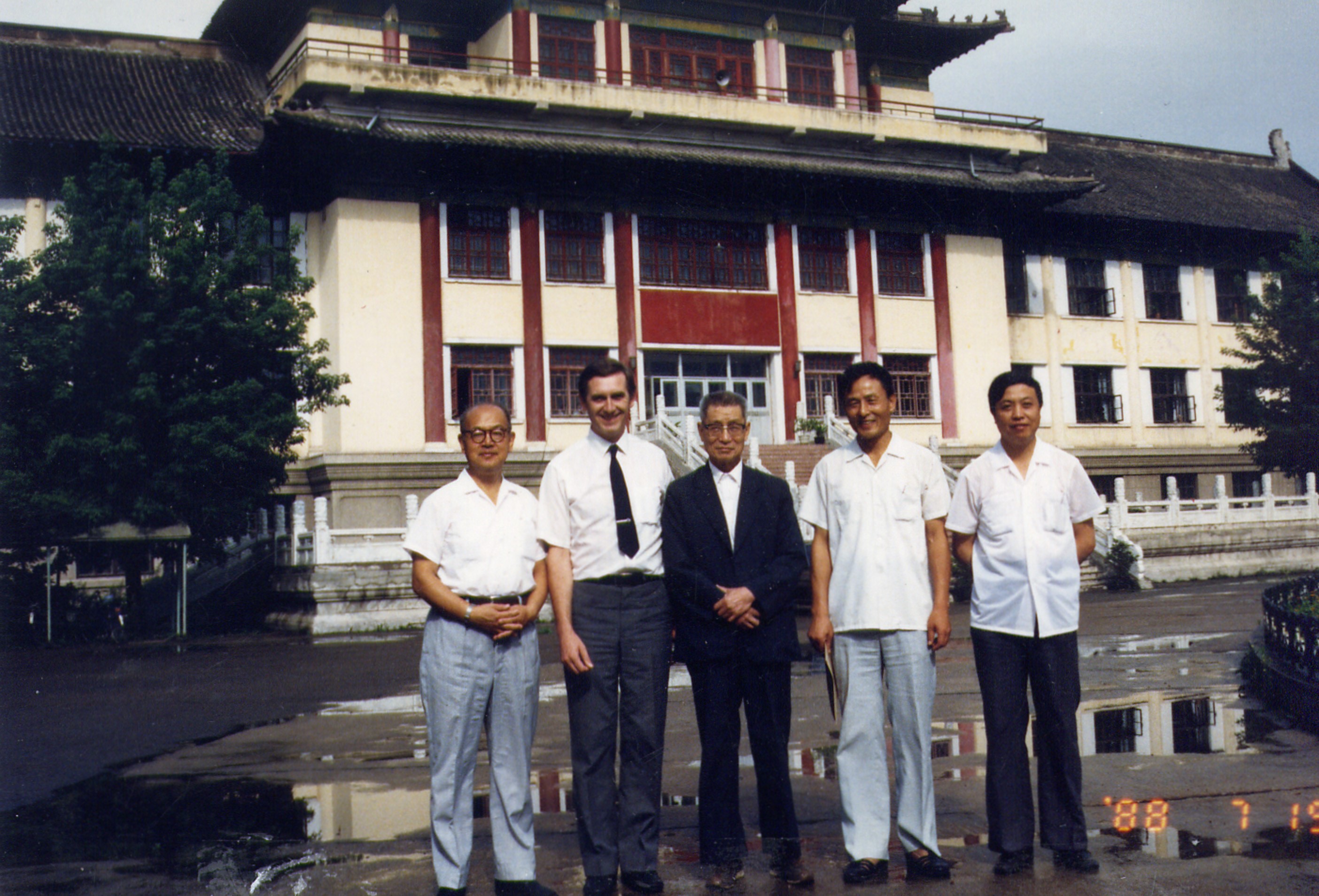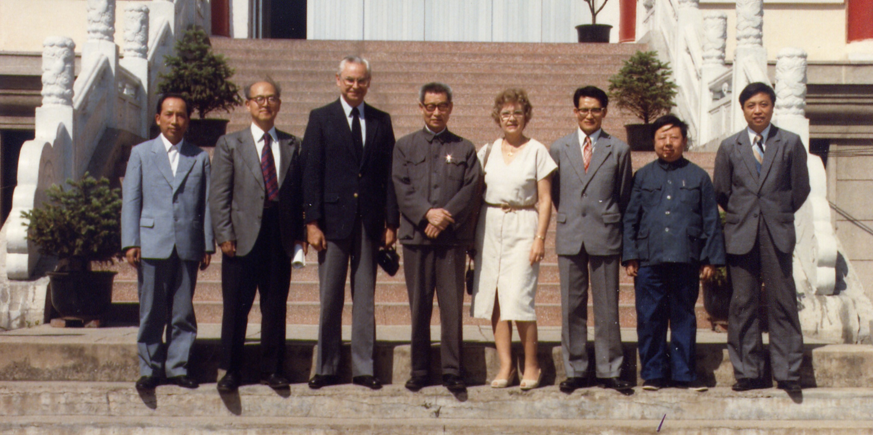 接见美国哥伦比亚大学M.P.Bieniok教授(左4,1985年) |